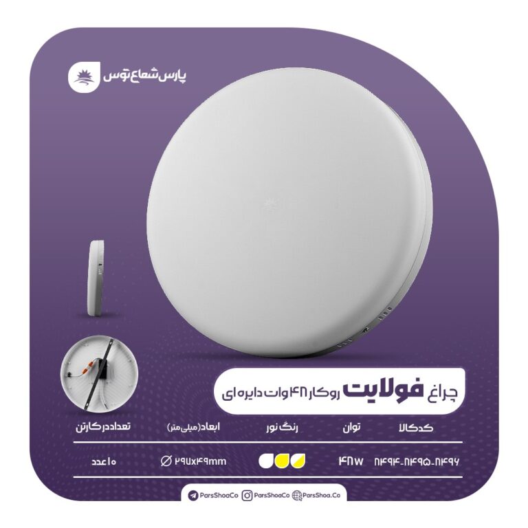 چراغ اقتصادی روکار سنسوردار اکو سنسوریا ۲۵ وات بدنه سفید پارس شعاع توس به قطر ۲۸ سانت