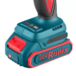 این دریل شارژی با 2 باتری لیتیوم یونی 20 ولتی و 2000 میلیآمپر ساعتی میتواند به صورت مداوم کار کند. این باتری در تمامی شارژیهای 20 ولت سری 86 رونیکس قابل استفاده است.