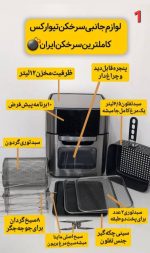 - اقلام همراه:سبد اصلی سرخ کن دارای جوجه گردان دارای سبد چرخان دو عدد سینی توری که قابلیت پخت همزمان رو بهتون میده یک سینی بزرگ 10 عدد سیخهای جوجه، بال، کتف و جگر سیخ مخصوص برای تهیه مرغ بریونی