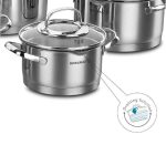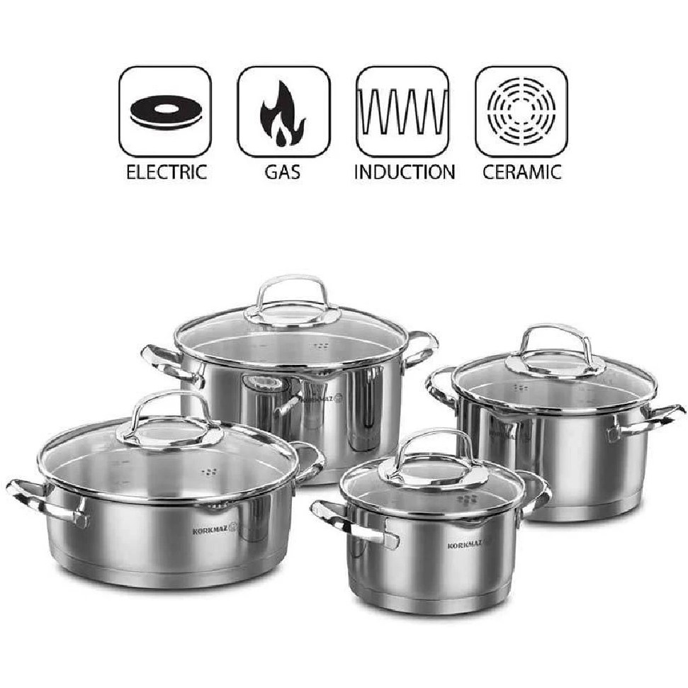 سرویس قابلمه کرکماز A1999 Steama یکی دیگر از سرویسهای پخت و پز برند محبوب کرکماز کشور ترکیه میباشد. بدنه این سرویس از استیل ضد زنگ 18/10% (Cr-Ni 18/10 stainless steel) ساخته شده است. این نوع استیل حاوی 18 درصد کروم و 10 درصد نیکل میباشد. همچنین سطح قابلمهها برای درخشندگی بیشتر به صورت دقیق صیقل داده شده که زیبایی خاصی به قابلمهها داده است.