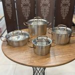 مدل پرولاین A1149 یکی از دیگر سرویسهای پخت و پز زیبا و با کیفیت شرکت کرکماز ترکیه میباشد.این سرویس از جنس استیل ضد زنگ 18/10 (Cr-Ni 18/10 stainless steel) می باشد و دستگیرههای آن از استیل ضد زنگ و به رنگ زرگلد (متمایل به رنگ مسی) ساخته شده است.