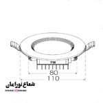 چراغ توکار سولاریس 9 وات دایرهای پارس شعاع توس، از جمله چراغهای توکار سقفی بوده و برای نصب آن نیاز به حفرهای با قطر 8 سانتیمتر دارید. عمق مورد نیاز این پنل هالوژنی توکار نیز 4 الی 4.5 سانتیمتر است. جنس بدنهی این چراغ توکار ABS بوده که نصب و نگهداری آن را آسانتر میکند. این چراغ 9 واتی، نوری معادل 650 لومن تولید میکند که بازدهی بسیار مناسب و مطلوبی به حساب میآید. بدنهی چراغ توکار سولاریس 9 وات دایرهای پارس شعاع توس در دو رنگ سفید و مشکی تولید میشود. که شما میتوانید متناسب با طراحی دکوراسیون خود هر کدام از این رنگها را انتخاب کنید. قطر خارجی این چراغ 110 میلیمتر و ضخامت لبهی چراغ 3 میلیمتر است.