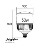 لامپ LED فوق کممصرف استوانه ای 30 وات پارس شعاع توس پایه E27