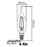 لامپ LED اشکی ۶ وات فیلامنتی پارس شعاع توس پایه E14 با ضمانت معتبر