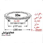 چراغ توکار LED گلاریس 30 وات دایره ای قطر حفره ۲۰ سانت، قطر کلی چراغ ۲۵ سانت پارس شعاع توس